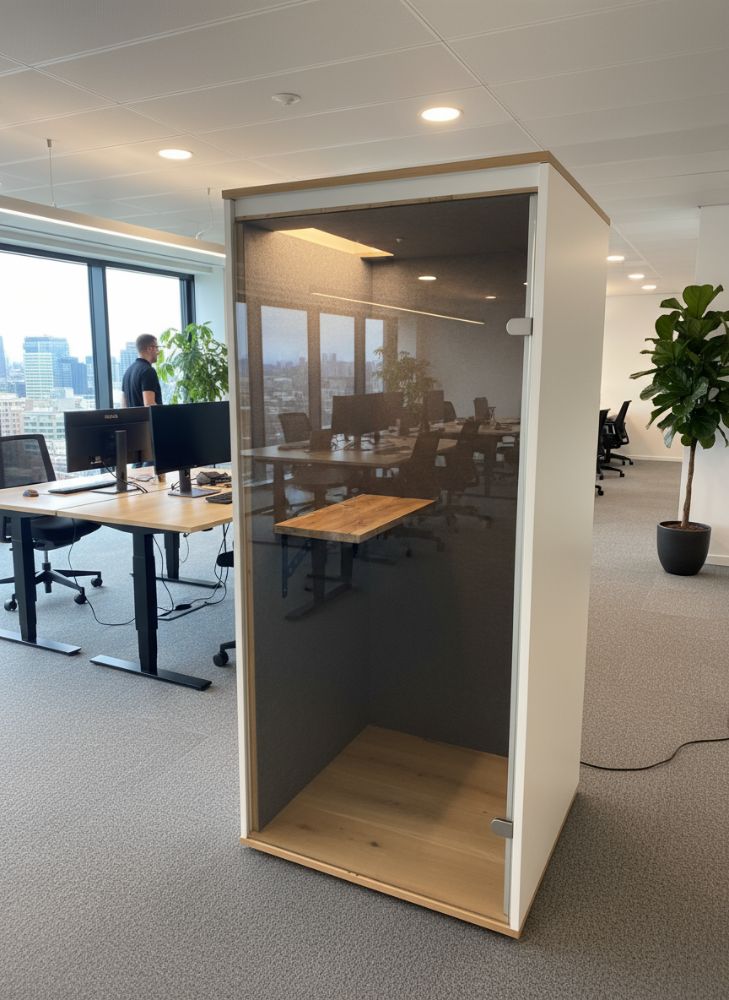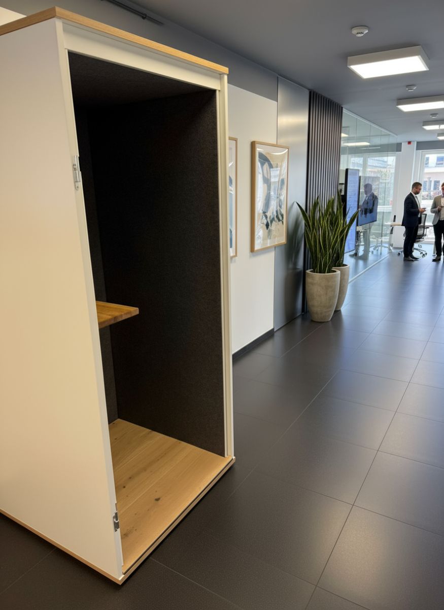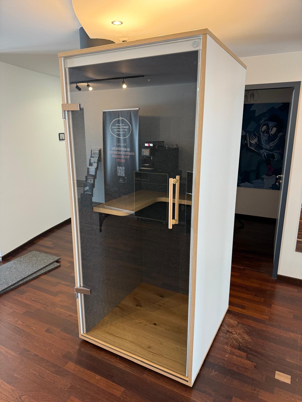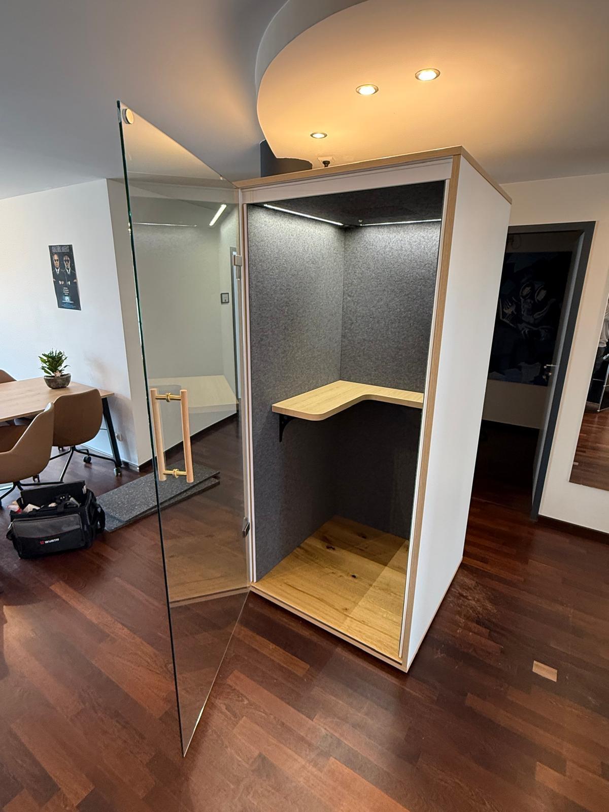 Poniżej prezentujemy nasze kabiny akustyczne w realnym zastosowaniu – zarówno u nas, jak i u naszych klientów. Od pierwszego pomysłu aż po montaż – pracujemy z zaangażowaniem i dbałością o każdy szczegół. Działamy na terenie całych Niemiec. Masz pytania? Skontaktuj się z nami!
